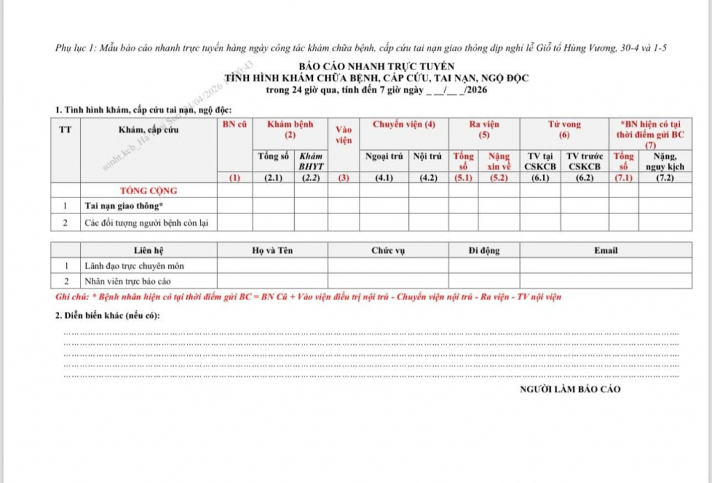 Về chế độ thông tin báo cáo, Bộ Y tế yêu cầu các cơ sở khám, chữa bệnh có giường bệnh thực hiện báo cáo trực tuyến số liệu hằng ngày (kể cả trường hợp không có dữ liệu phát sinh) trên trang cdc.kcb.vn.