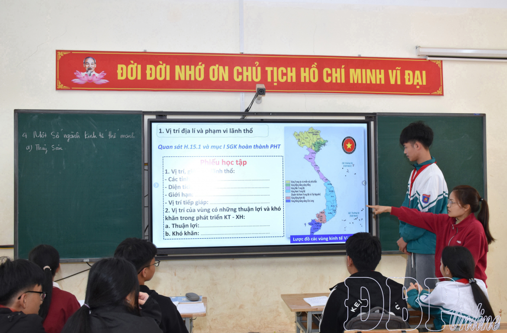 Không những hỗ trợ giảng dạy, công nghệ số cũng góp phần thay đổi cách tổ chức các hoạt động trên lớp. Giáo viên có thêm công cụ để thiết kế bài giảng trực quan, xây dựng các tình huống học tập gắn với hình ảnh, bản đồ, dữ liệu số. Học sinh không chỉ nghe giảng mà còn tham gia thảo luận, trả lời câu hỏi, phân tích nội dung ngay trên các tư liệu được trình chiếu. Nhờ đó, tiết học trở nên linh hoạt hơn, tạo điều kiện để học sinh chủ động tiếp cận kiến thức và bày tỏ quan điểm của mình.