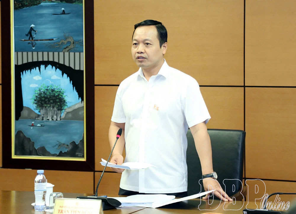 Đại biểu Trần Tiến Dũng, Ủy viên Trung ương Đảng, Bí thư Tỉnh ủy, Trưởng đoàn ĐBQH tỉnh Điện Biên chủ trì phiên thảo luận tại Tổ 12, bao gồm Đoàn ĐBQH các tỉnh: Điện Biên, Hà Tĩnh và Vĩnh Long.