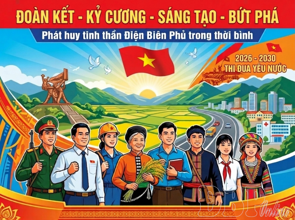 ĐBP - Phong trào thi đua yêu nước giai đoạn 2026 - 2030 do UBND tỉnh phát động với chủ đề: “Phát huy tinh thần Điện Biên Phủ trong thời bình, thi đua Đoàn kết - Kỷ cương - Sáng tạo - Bứt phá”.