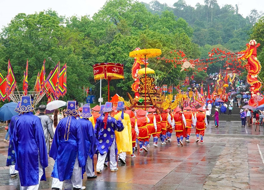 Trong các nghi lễ ấy, rước kiệu về Đền Hùng dâng cúng lễ vật lên Tổ tiên là một nét đẹp văn hóa truyền thống, mang tính cộng đồng sâu sắc, thể hiện đạo lý “Uống nước nhớ nguồn”, sự tôn kính tổ tiên.