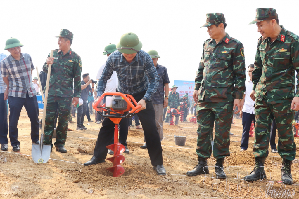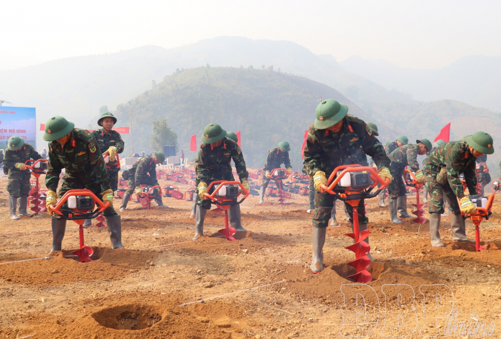 ĐBP - On the morning of April 3, Điện Biên province organized a synchronized launch for digging holes to plant coffee and macadamia trees, while also testing a low-altitude spatial economic development model for the year.