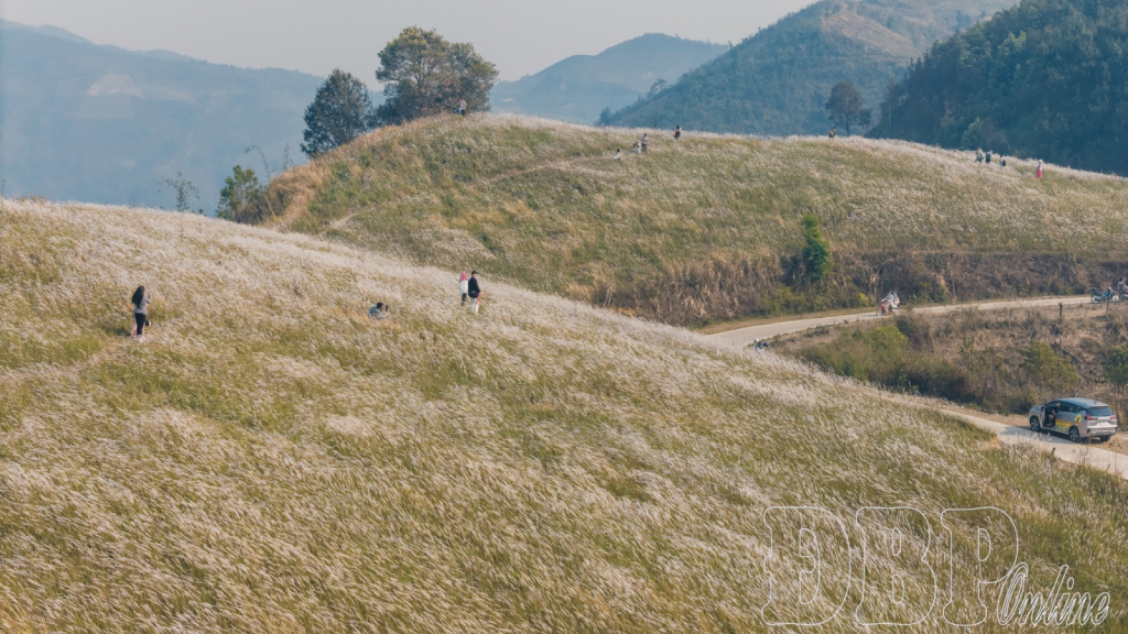 With its unique landscape, clear seasonality and strong appeal for check-ins, photography and picnics, the hill quickly became a magnet for visitors from across the province and nearby areas. On weekends, hundreds of people from Pu Nhi, Na Son, Điện Biên Phủ ward and Mường Thanh ward flock here to admire the scenery and capture striking photos amid the vast grassland.