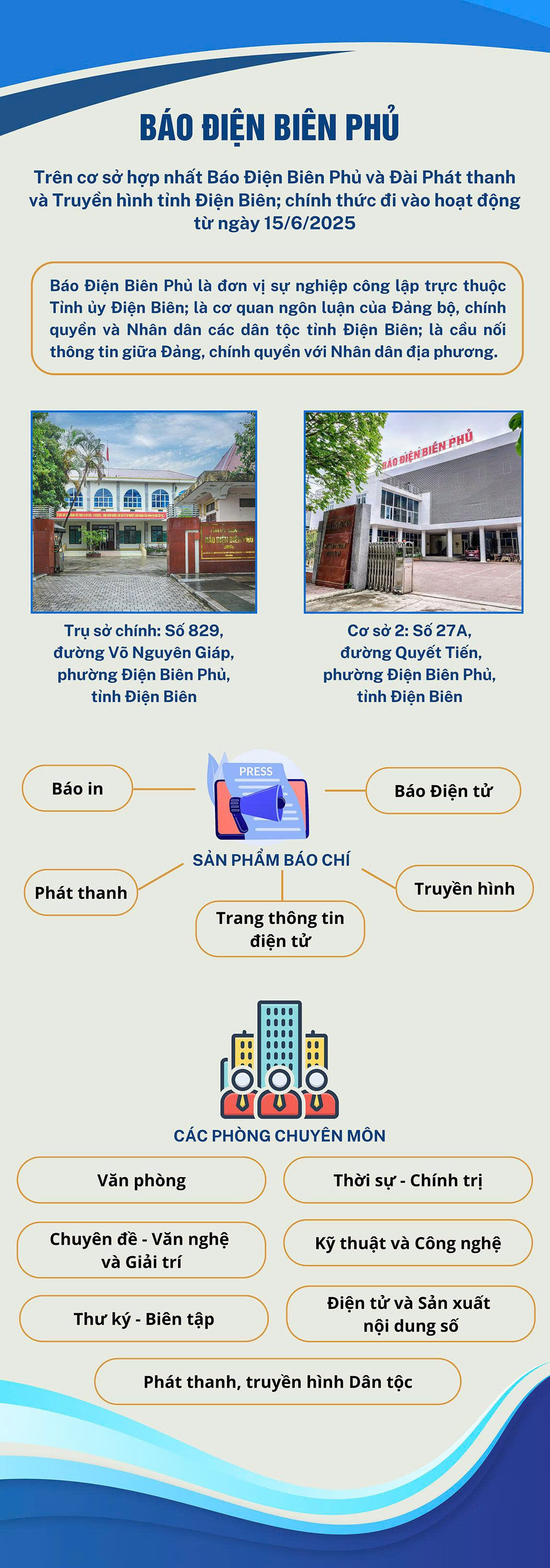 Điện Biên TV - Thực hiện chủ trương sắp xếp, tinh gọn tổ chức bộ máy, Tỉnh ủy Điện Biên ban hành Quyết định số 6491-QĐ/TU ngày 1/6/2025 về việc thành lập Báo Điện Biên Phủ trên cơ sở hợp nhất Báo Điện Biên Phủ, Đài Phát thanh và Truyền hình tỉnh.