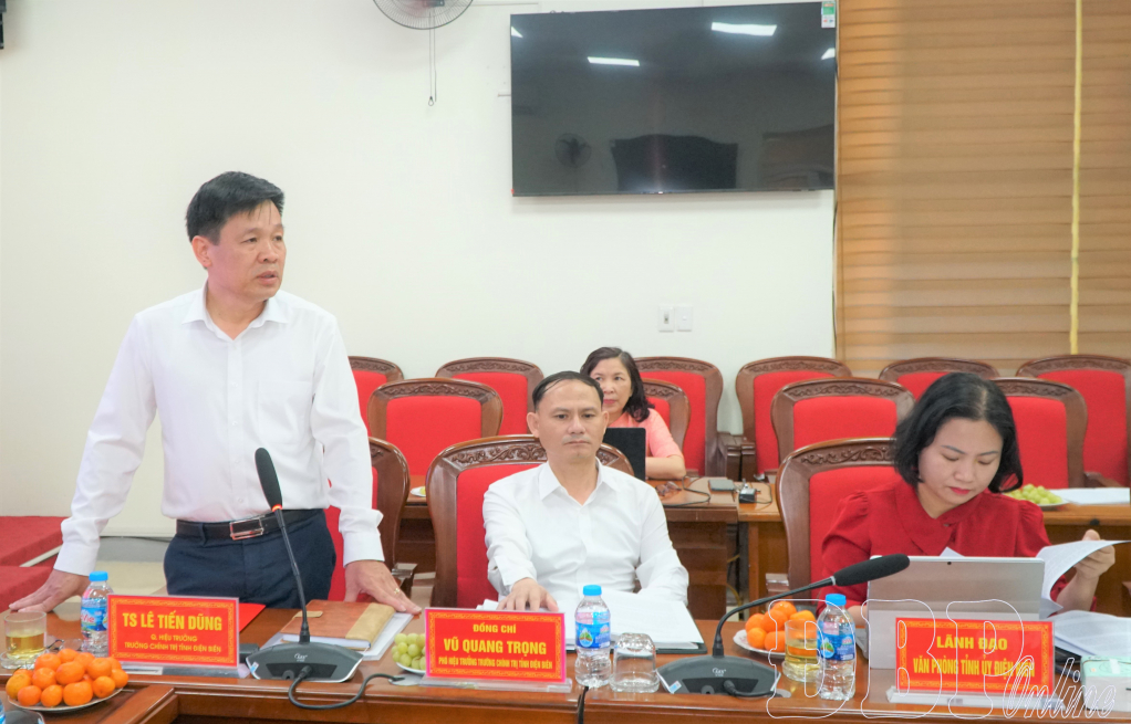 Tại buổi làm việc, lãnh đạo Trường Chính trị tỉnh báo cáo tóm tắt tình hình thực hiện nhiệm vụ quý IV/2025, quý I/2026 và thực hiện “Đề án xây dựng Trường Chính trị tỉnh Điện Biên đạt chuẩn”. Theo đó, trong quý IV/2025 nhà trường đã tổ chức 33 lớp đào tạo, bồi dưỡng với 1.186 học viên (đạt 145,83% kế hoạch tỉnh giao). Trong quý I/2026 Trường thực hiện 10 lớp đào tạo, bồi dưỡng.