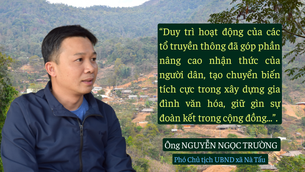 Xuất phát từ thực tiễn, xã Nà Tấu thành lập các Tổ truyền thông cộng đồng tại các bản, làm nòng cốt tuyên truyền phòng, chống bạo lực gia đình đến từng hộ dân. Các thành viên thường xuyên đến từng gia đình vận động, nhắc nhở, giúp người dân nhận thức rõ bạo lực gia đình không phải chuyện riêng, từ đó dần thay đổi cách ứng xử, cùng chung tay phòng chống.
